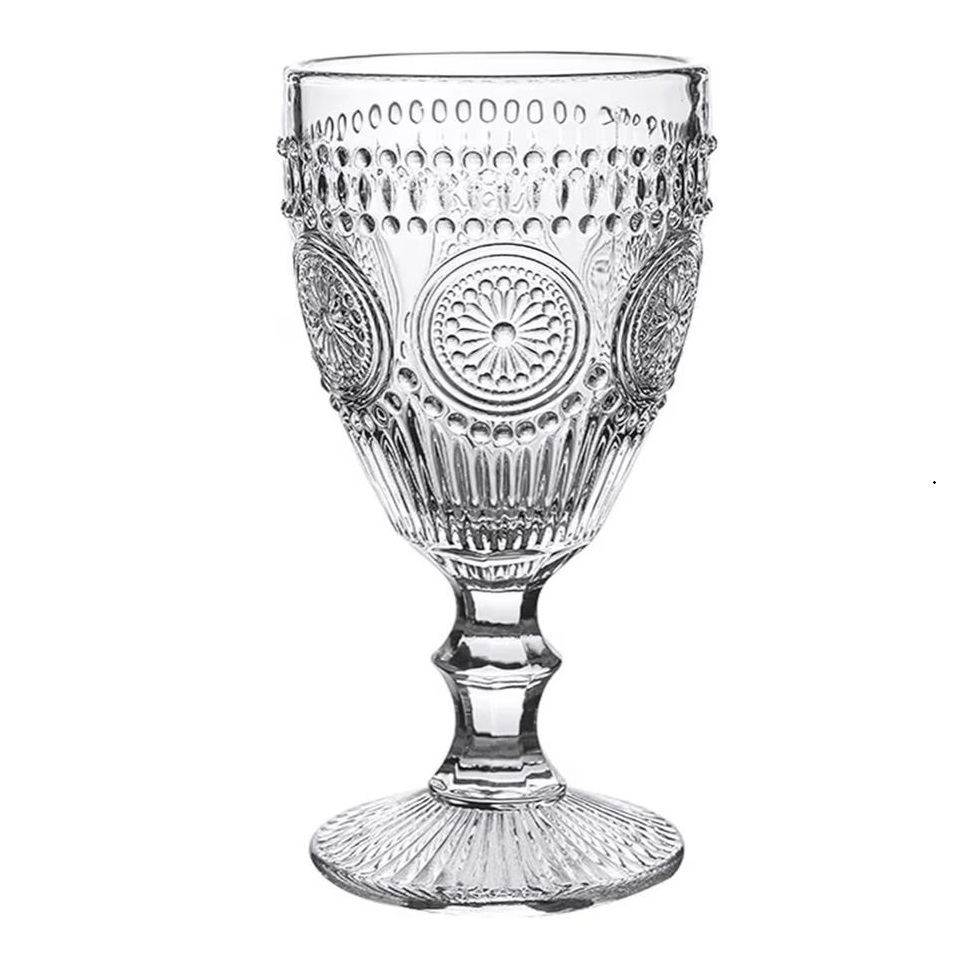 Add a charming vintage touch to your table settings with the Sunflower Embossed Water Glass. Featuring a beautifully detailed sunflower-pattern embossing, this decorative glassware piece blends elegance with timeless style. It is perfect for weddings, garden parties, bridal showers, and upscale events throughout the Greater Toronto Area.